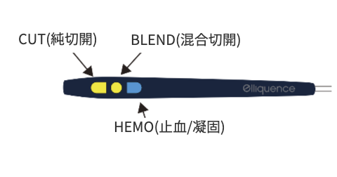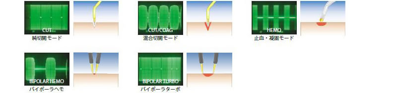 - 水中操作を得意とし、空中操作では攝子先への組織付着(焦げ付き)のないラジオ波
