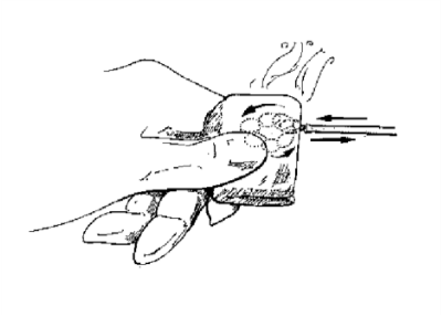 - ガーゼで挟みながら通電させて、組織を拭います。(※どのモードでも通電できます)